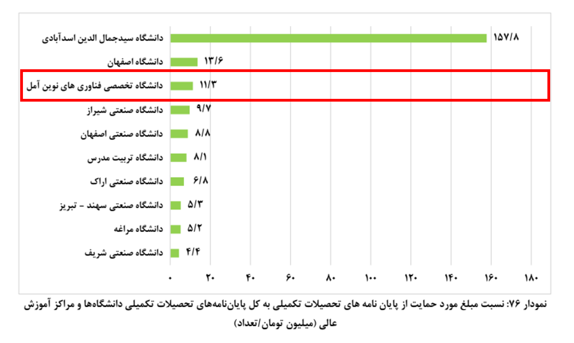 • نکته مهم: در این زمینه، آمار دانشگاه تخصصی فناوری‌های نوین از دانشگاه‌های برتر و مرجعی چون صنعتی شریف، تربیت مدرس، صنعتی سهند و اصفهان نیز بالاتر بوده است.